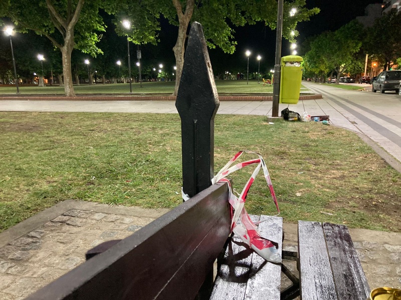 Momentos de susto pasó un joven cuando, mientras se encontraba por la noche en plaza Malvinas con amigos, se cayó de un banco que estaba atado con cintas de seguridad. El chico llegó a lastimarse pero no llegó a mayores.