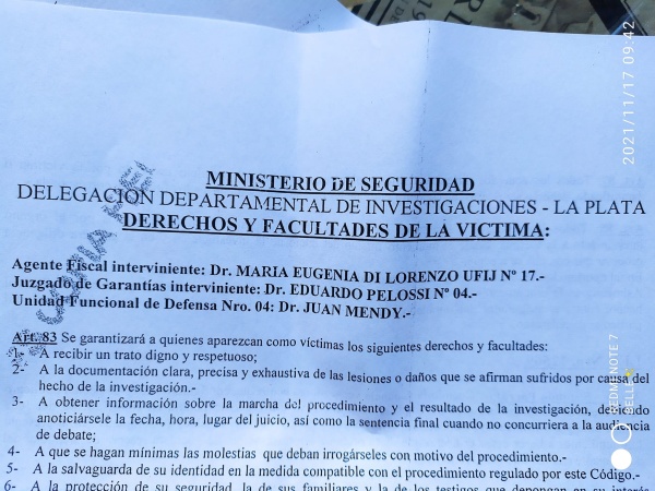 Además hubo falta de acompañamiento psicológico, algo básico en estos casos: "Un abandono total del juzgado de familia y niñez de La Plata, que supuestamente intervienen en la causa pero no ayudan al bienestar de las mismas, o sea, sólo aparecen en la causa para figurar".