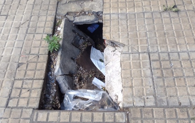 De esta manera, retrató un pozo que hay en calle 12 y 55, donde las rejillas de cemento de la vereda están totalmente rotas y dejan al descubierto un gran pozo. “Además se acumula basura, agua y se forma un enchastre. Si pisás ahí te rompés el pie”, declaró muy enojada.