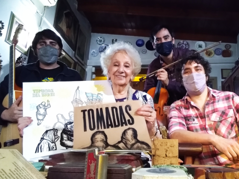 La banda está completada por Luciano Novillo en voz y la guitarra criolla de Javier Mezquita. A ellos se le sumó Dolores Solá, en una colaboración, para hacer la canción "Tomadas del brazo", que relata las hazañas de las Madres y Abuelas de Plaza de Mayo. La misma los llevó a conocer personalmente a Taty Almeida y Estela de Carlotto.