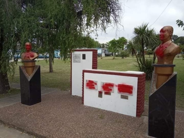 Los bustos y placas en homenaje a Eva Duarte y a Juan Domingo Perón amanecieron vandalizados en Berisso. Fue en el Parque Cívico.
