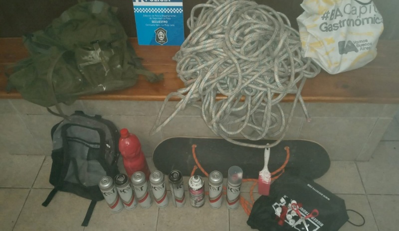 En poder de ellos se les secuestraron varios aerosoles, una botella de pintura, pinceles, una mochila y hasta una soga de seguridad.