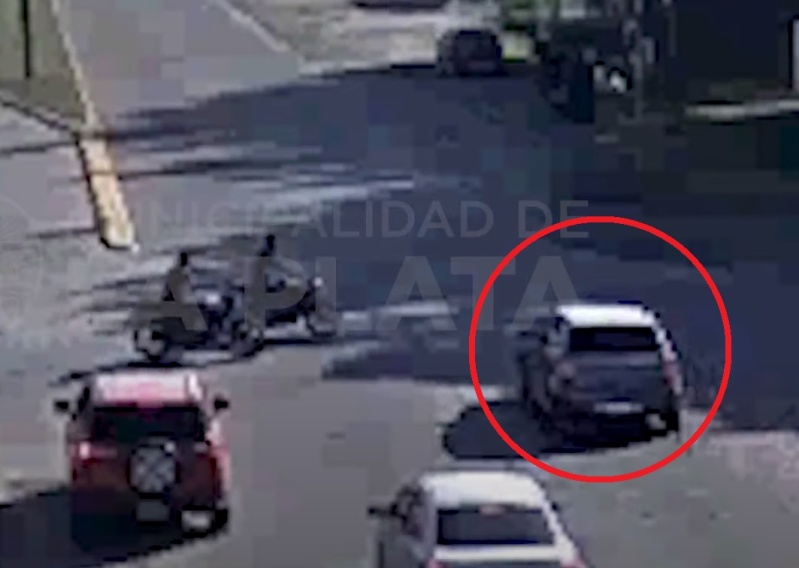 De acuerdo a las imágenes de una de las cámaras de seguridad del Centro de Operaciones y Monitoreo (COM) dependiente de la Secretaría de Seguridad de la Municipalidad de La Plata, se puede observar cómo el vehículo pasa el semáforo en rojo.
