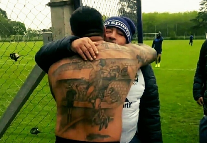 Pero no fue tan fácil. Conocerlo dependía únicamente del mismo Maradona, ya que él decidía quién podía verlo y quién no. Se quedó a ver la práctica y esperó pacientemente, hasta que lo vio. En ese momento dijo "Diego, para vos" y le mostró el tatuaje. "Me miró, se asombró, sonrió. Fueron los 30 segundos más lindos de mi vida, sacándole una sonrisa, estando al lado del ídolo máximo".