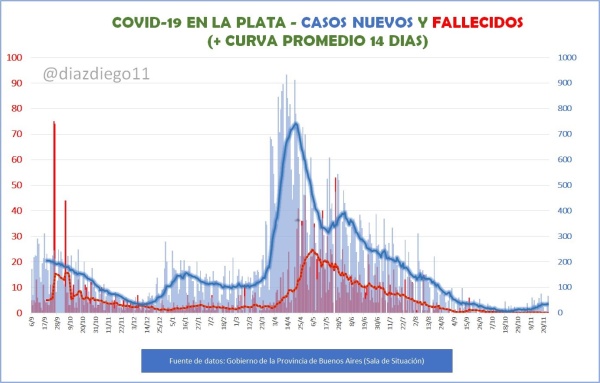 El Ministerio de Salud bonaerense informó que en la última jornada hubo 67 casos nuevos en La Plata. Se llevaron a cabo 599 testeos. Por lo tanto, la tasa de positividad es del 11,2%.