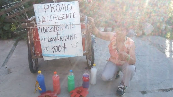 En la puerta de dicho establecimiento se dedica a vender artículos de limpieza con su carrito. Pese a sus problemas físicos, Mirta pedalea con su bici todos los días. No para y pelea día a día en busca de un futuro mejor.