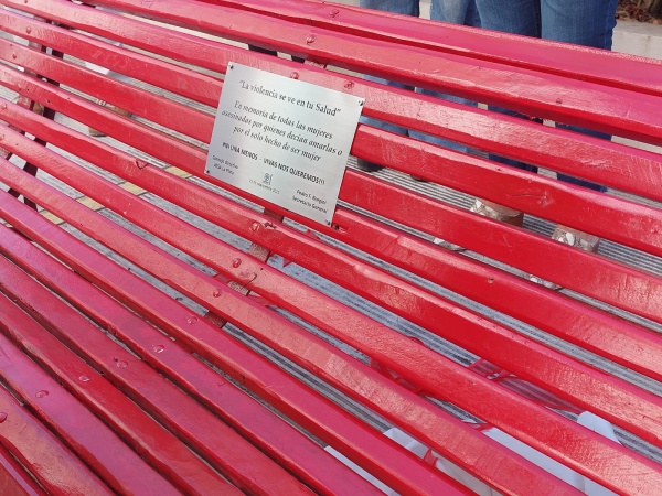 En primer se dispuso de la inauguración de un banco rojo. “La violencia se ve en tu salud. En memoria de todas las mujeres asesinadas por quienes decían amarlas o por el solo hecho de ser mujer”, reza la placa.