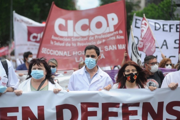 La Asociación Sindical de Profesionales de la Salud de la Provincia de Buenos Aires (CICOP) realiza un nuevo paro de 24 horas este viernes 3 de diciembre con movilización en La Plata a las 10:30 horas desde Plaza Moreno a la Gobernación, para reclamar al gobernador Axel Kicillof la “reapertura de paritarias” y “recomposición salarial”. Además, manifestaron preocupación por la nueva variante Ómicron.