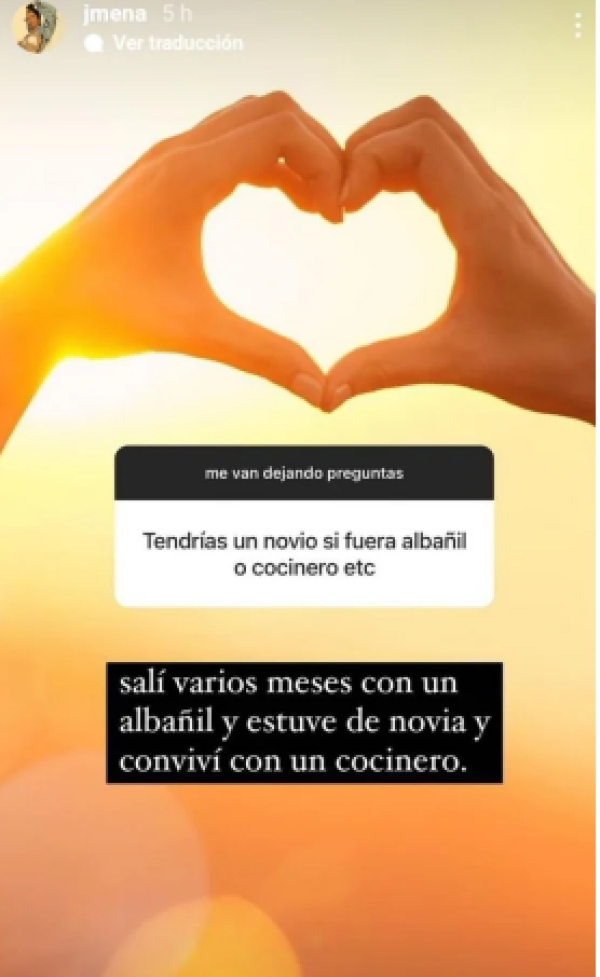 "¿Te pondrías de novia con un albañil o un cocinero?", le preguntaron y ella respondió: "Salí y estuve de novia varios meses con un albañil. Y conviví con un cocinero".