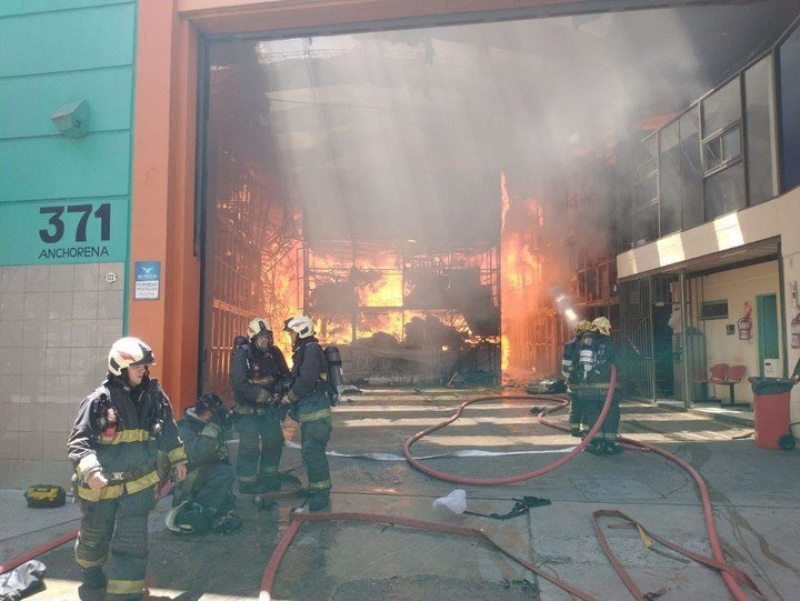El fuego se desató en un depósito que funciona como baulera ubicado en la intersección de las calles Anchorena y Valentín Gómez por causas que todavía no fueron reportadas, y generó una intensa columna de humo negro que se visualizaba desde varias cuadras del lugar.