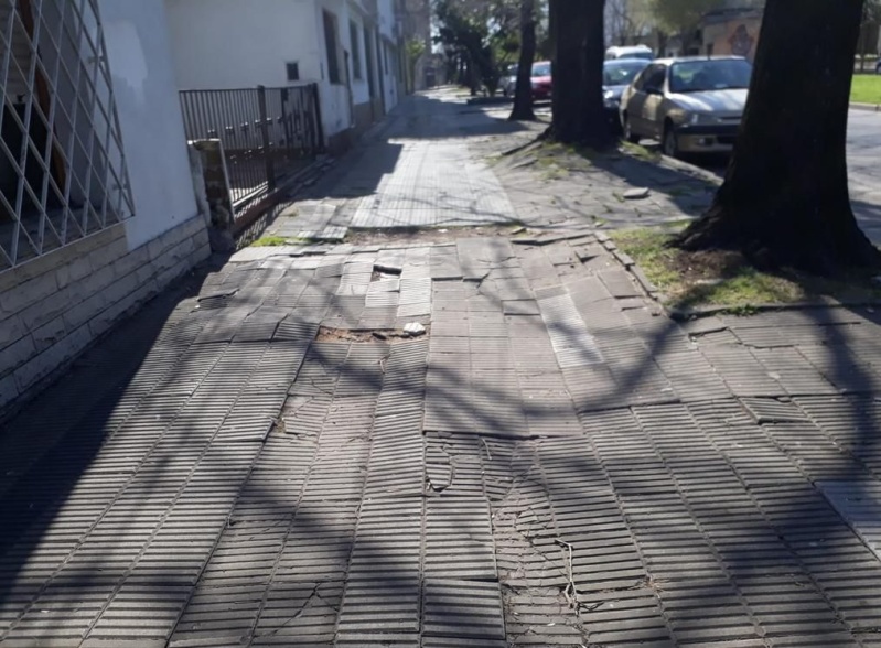 Vecinos de la zona de Plaza Sarmiento reclaman la reparación de las veredas. Sucede en la zona de 19 y 65, a metros de la plaza.