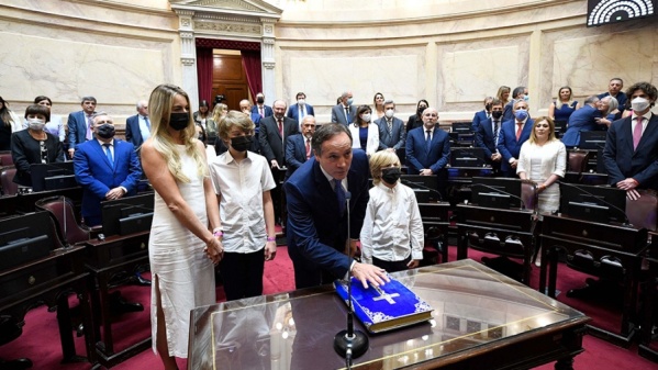 La ceremonia se extendió durante una hora y los senadores prestaron juramento ante el estrado acompañados por familiares, que previamente debieron hisoparse y tomarse la temperatura como parte del protocolo anticovid antes de ingresar al recinto.