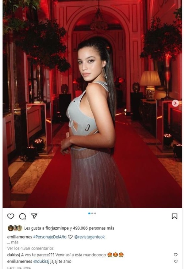 Para festejar, la artista subió una foto a sus redes sociales, y Duki, su flamante novio no dudó en halagarla. "¿A vos te parece venir así a este mundo?", comentó el trapero totalmente enamorado. Acto seguido, Emilia le declaró su amor con un "Jajaja, te amo".
