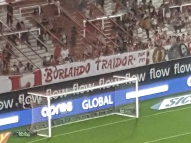 "Burlando traidor", decía uno de los "trapos" colgados en la tribuna de 57 en el Estadio Jorge Luis Hirschi. "Los códigos no se rompen", aseveraron en otra pintada.