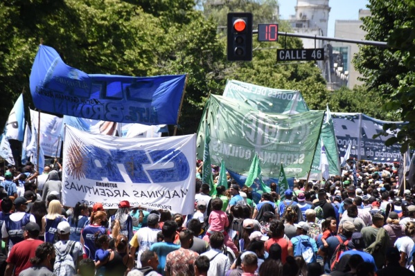 La imponente movilización ocupa la calle 7, en el tramo que va desde plaza Italia hasta plaza San Martín, donde la columna frenó frente a la Legislatura.