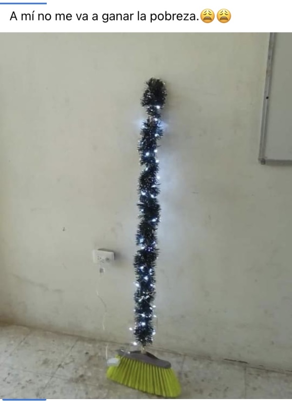 "No me va a ganar la pobreza" puso un hombre, acompañado de una foto de una escoba adoranda con motivos navideños.