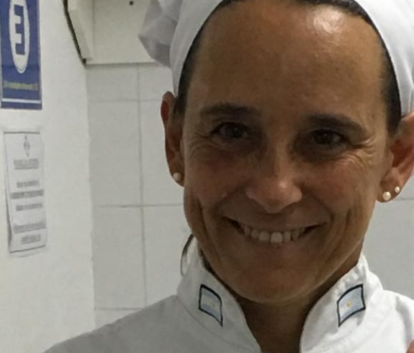 Griselda muestra con orgullo una foto de su hijo con un gran pescado. Es la imagen que ilustra la nota: “Esa foto es dentro de una de las cámaras de refrigeración del Hotel Villa Cortés en Canarias. Es un atún fresco de 40 kg, que se iba a usar para armar un banquete”.
