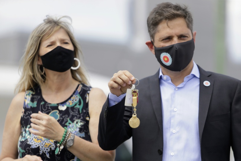 El gobernador de la provincia de Buenos Aires, Axel Kicillof, encabezó este martes el acto de entrega de 57 viviendas en el municipio de Ayacucho, junto a la ministra de Gobierno, Cristina Álvarez Rodríguez; el subadministrador general del Instituto de la Vivienda, Diego Menéndez, y el intendente local, Emilio Cordonnier.