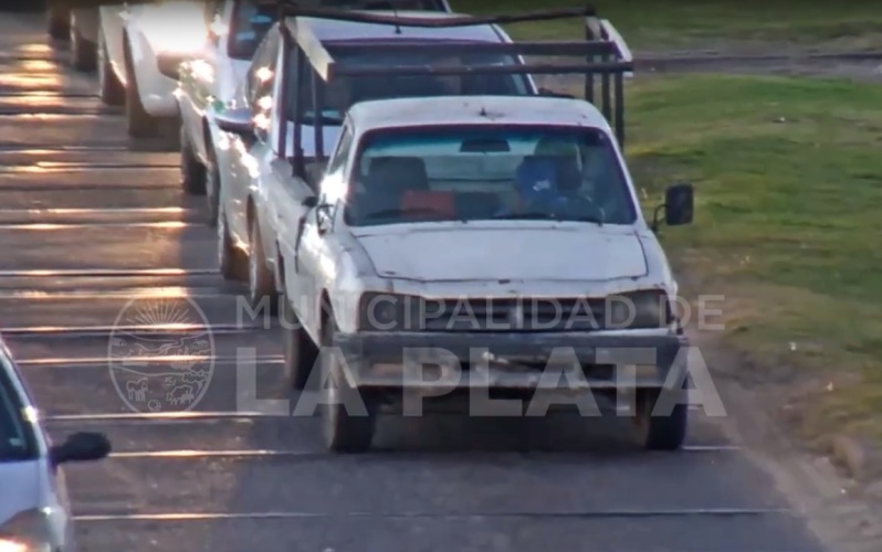 Las cámaras del servicio del Centro de Operaciones y Monitoreo de la Municipalidad de La Plata registraron el pasado domingo, el momento en que el conductor de una camioneta es arribado por otros conductores en el cruce de avenida 19 y 72 ya que su vehículo no avanzaba.