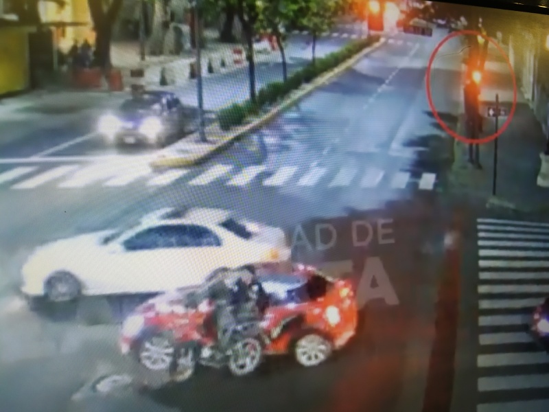 Las cámaras del Centro de Operaciones y Monitoreo de Comuna en La Plata captaron un el accidente provocado por un motociclista que transitaba por la vía pública sin casco y cruzó cuando el semáforo estaba en rojo.