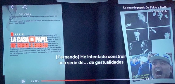 La palabra del protagonista español y la imagen en la que Diego, Gimnasia, y el Bosque son protagonistas, se puede ver en "De Tokio a Berlín", una serie documental donde los actores protagonistas, que dan vida al Profesor o Tokio, y los directores de los episodios hablan de cómo es el proceso artístico y emocional que supone rodar esta serie de gran éxito. Los episodios se centran sobre todo en la primera mitad de la temporada final.