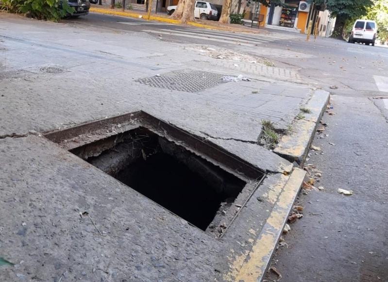Los frentistas se quejaron por un desagüe sin protección ni advertencia de riesgo.