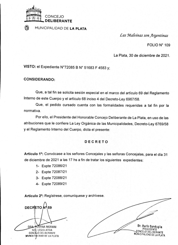 El pedido era que la sesión se lleve a cabo este jueves a las 11 horas, pero el Presidente del Concejo Deliberante convocó para un insólito momento: este viernes 31 de diciembre a las 17 horas.