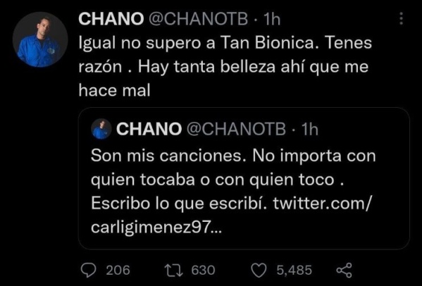 Sin embargo, luego de haber vuelto a los escenarios con un increíble show en el Luna Park, el músico recordó sus épocas en la banda que tenía con su hermano Bambi, Tan Biónica. En una charla vía Twitter con sus fans, sobre el sentido de sus letras, el cantante recordó sus tiempos dorados y los éxitos que habían lanzado, como “Obsesionario en La Mayor” y “Ciudad Mágica”.
