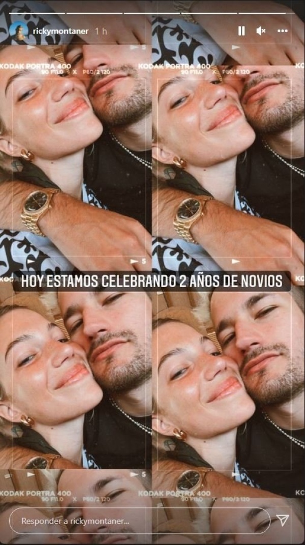 Por su parte, Ricky no se quedó atrás, y en medio de la presentación de su nueva canción, subió una romántica sesión de fotos con su flamante esposa. "Hoy estamos celebrando dos años de novios", escribió.