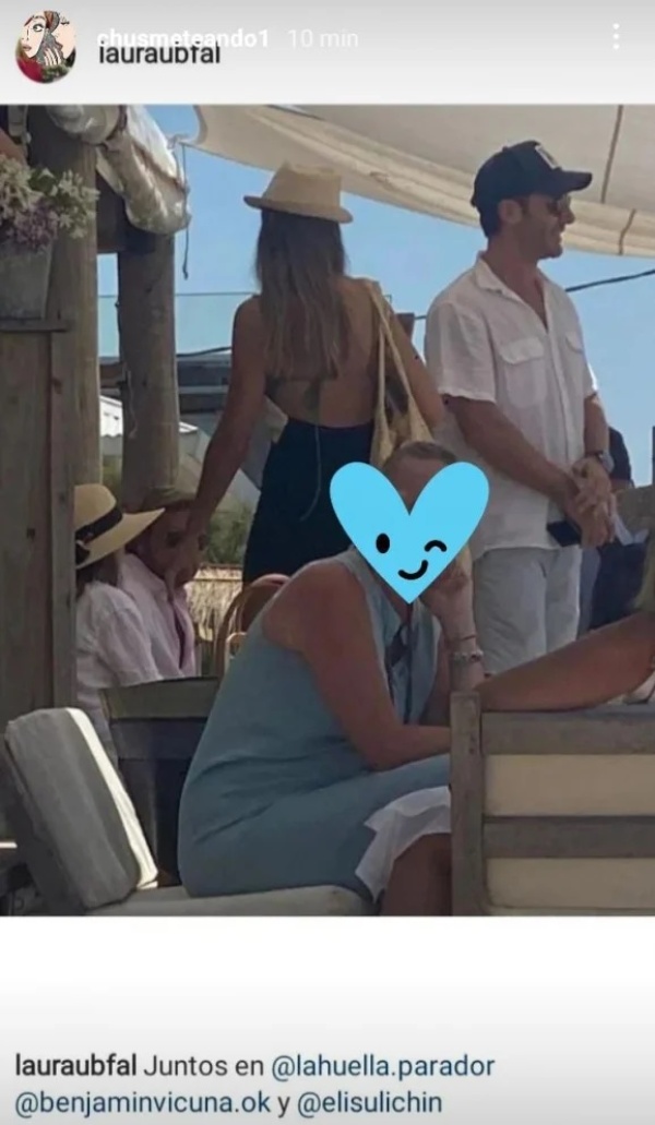 Benjamín Vicuña, que había pasado unos días con sus hijos en Buenos Aires, viajó a Punta del Este para visitar a Eli Sulichin, la amiga de Pampita. La periodista Laura Ubfal publicó una foto donde el actor chileno está con su novia en el restaurante La Huella, en José Ignacio.