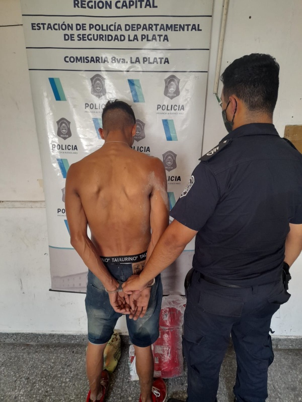 Luego de una persecución por los techos , los uniformados detuvieron al malviviente trasladadolo a la Comisaría 8va donde quedará encerrado a la espera de la disposición de la UFI N°8 del Departamento Judicial de La Plata.