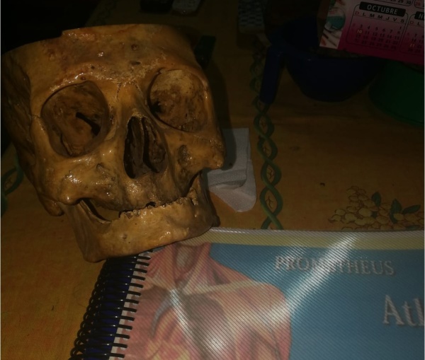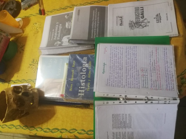 Daniela y Claudio se ayudan mutuamente para estudiar. La mesa de la cocina está llena de apuntes, fotocopias y libros. Y hasta un cráneo, al que apodan “Pocho”. Hace un par de días Claudio hizo la disección de un corazón de vaca. No es ningún improvisado.