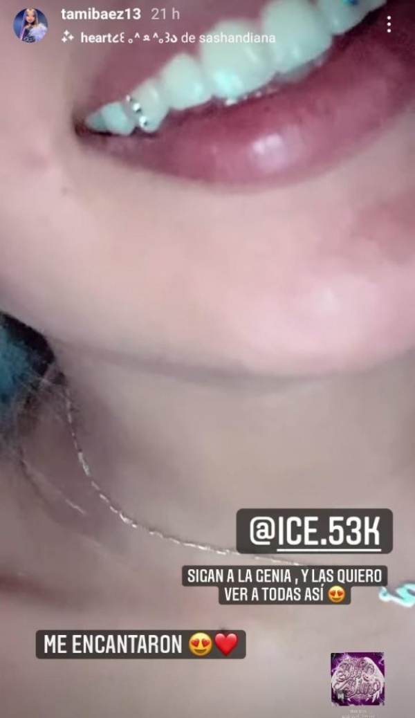 A través de las historias de su Instagram, la mamá de Jamaica se mostró muy sonriente y reveló el cambio que se había hecho. "Sigan a la genia, las quiero ver a todas así”, escribió Tamara, mostrando que se había incrustado joyería en sus dientes.