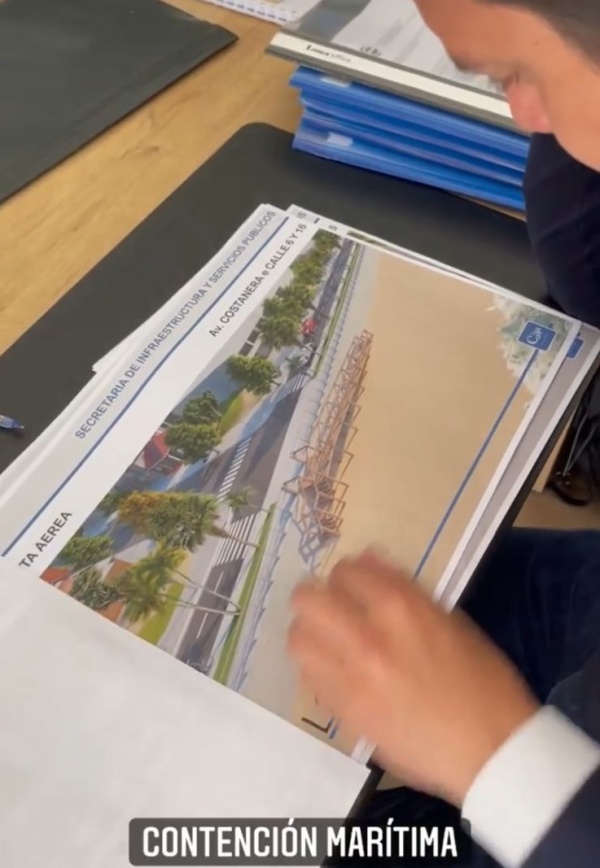 El foco apunta contra el intendente del Partido de La Costa, Cristian Cardozo. En su cuenta de Instagram publicó las imágenes del proyecto de “contención marítima”, que consiste en ubicar estratégicamente un paredón que “frene” el agua y así evitar su avance.