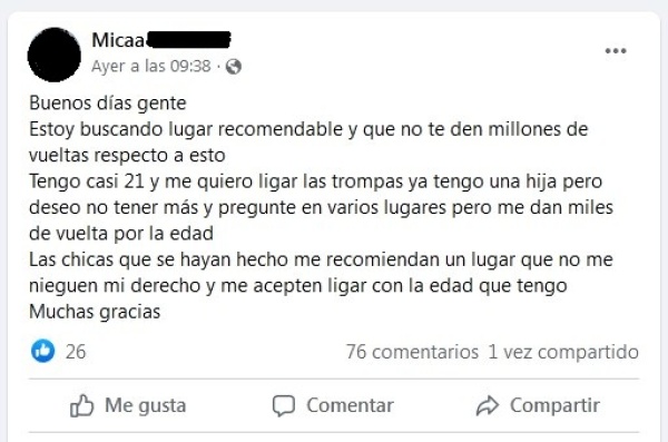 Es por eso que requirió a las redes sociales para poder saber dónde hacerlo sin problema, y pidió a "otras chicas que se lo hayan hecho" que le recomienden y así "no me nieguen mi derecho y me acepten ligar con la edad que tengo".