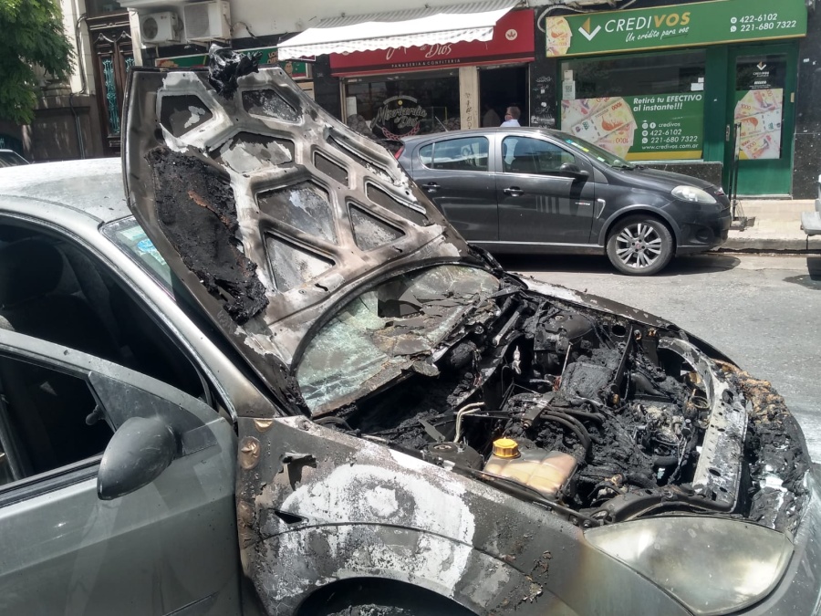 Todo sucedió este mediodía, cuando venía por calle 48, y una vez que cruzó 5 se le reventó una manguera de nafta. Instantáneamente tanto el chofer como los pasajeros que llevaba debieron bajar del vehículo, un Ford Focus, que comenzó a prenderse fuego.