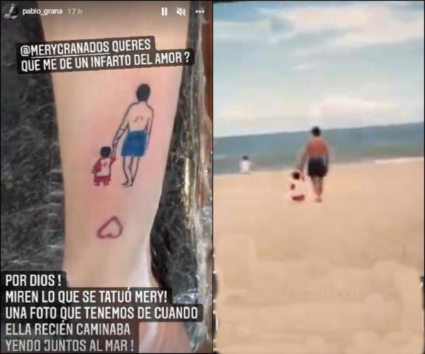 Muy emocionado, no dudó en compartirlo con sus seguidores: "Por Dios, miren lo que se tatuó Mery. Una foto que tenemos de cuando ella recién caminaba, yendo juntos al mar!”, relató más que conmovido y feliz.