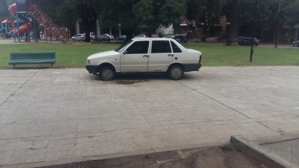 Un auto estacionado en el medio de Plaza Paso tomó por sorpresa a los vecinos