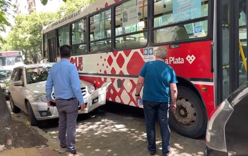 Un micro chocó tres autos este lunes en La Plata alrededor del mediodía en Diagonal 80 entre las calles 2 y 3, luego de haber perdido el control del rodado.