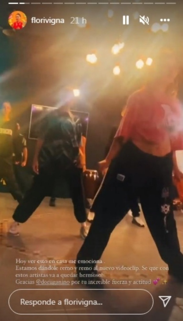 Acto seguido, compartió una foto del nuevo sector donde baila con su equipo y relató: “Hoy ver esto en casa me emociona. Estamos dándole remo y remo al nuevo videoclip. Sé que con estos artistas va a quedar hermoso"