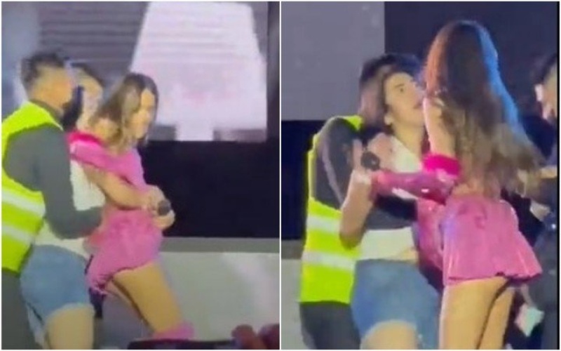 Mientras Tini se encontraba muy concentrada en su coreografía, la joven corrió hacia ella y la abrazó por detrás. Mientras ella intentaba comprender la situación, dos personas de seguridad corrieron para sacar a la fan del escenario.