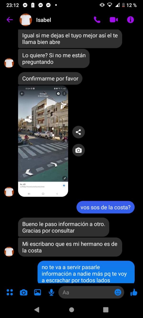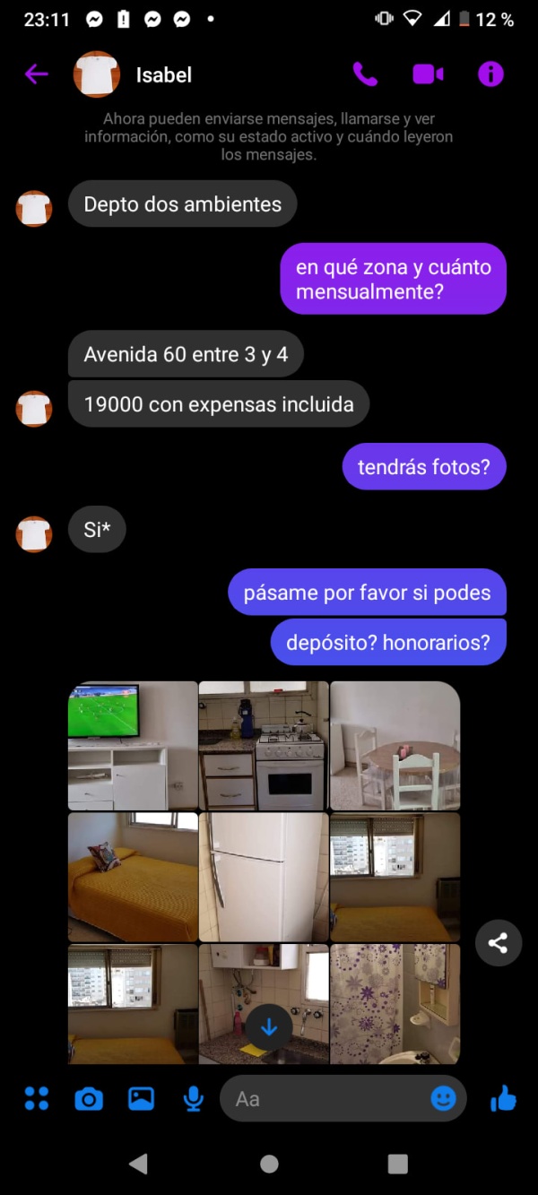 Luego, tras varias vueltas, "Isabel", quien ponía en alquiler el supuesto departamento decidió no dárselo. Pero para ese entonces, Agustina ya había conseguido bastante información. "Te voy a escrachar", le advirtió, y lo publicó en los grupos de alquileres de la ciudad.