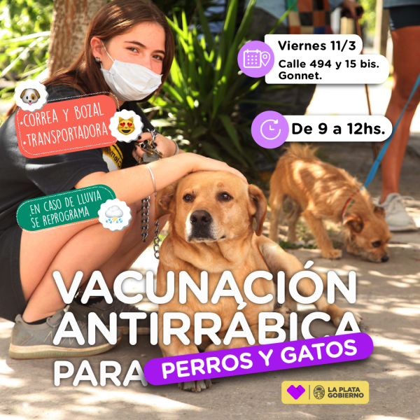La Municipalidad de La Plata llevará adelante este viernes una nueva jornada de vacunación antirrábica gratuita en la localidad de Gonnet, en el marco de la ininterrumpida campaña que llega cada semana a los distintos barrios de la Ciudad.