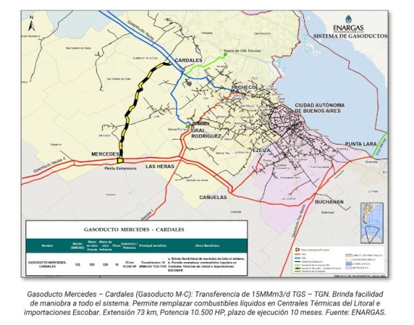 a) Se dispondría de un canal adicional de alimentación de gas natural, que formaría parte del Anillo Gran Buenos Aires (GBA), que reforzaría el abastecimiento del gran consumo residencial y de generación eléctrica que se registra en dicha zona de entrega.