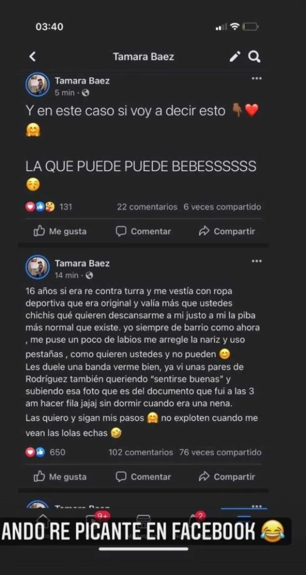 En un descargo que realizó en su cuenta oficial de Instagram luego de que se viralizara una foto suya a los 16 años y fuera fuertemente criticada, Tamara Báez, la novia de L-Gante adelantó cuál será su próxima cirugía.