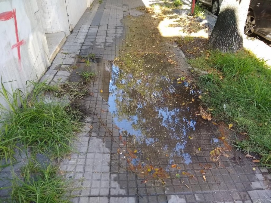 El desperfecto se registra en la cuadra de 59 entre 1 y 2, donde los frentistas se quejan por un charco de agua que se forma arriba de la vereda y termina por romperla.