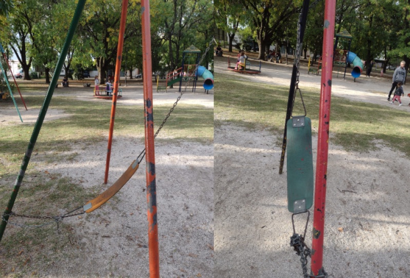 No es la primera vez que un vecino se comunica con LAPLATA1.com para expresar la indignación respecto al pésimo estado de los juegos de las plazas.