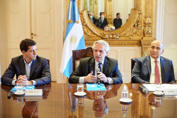 La reunión realizada en el Salón Eva Perón de la Casa Rosada, fue encabezada por el presidente de la Nación Alberto Fernández, el Jefe de Gabinete, Juan Manzur, y el ministro del Interior, Wado de Pedro, quien detalló que “la convocatoria fue solicitada por los gobernadores y gobernadoras para solicitar el estado de situación del juicio que se lleva en la Corte Suprema respecto del exceso de los fondos que fueron transferidos a la Ciudad en el marco del traspaso de la Policía Federal”.