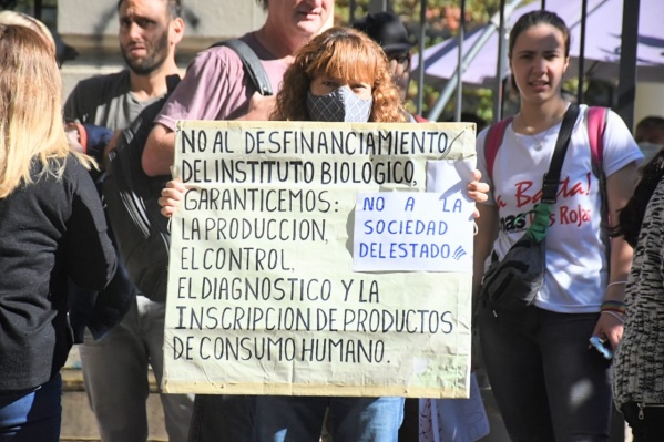 Este miércoles se desarrolla una fuerte protesta en las inmediaciones de la Legislatura Bonaerense. Los trabajadores del Instituto Biológico de Tolosa se oponen a un proyecto del Ejecutivo para que el establecimiento pase a ser una Sociedad del Estado.