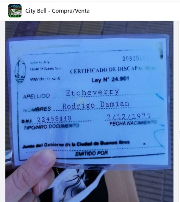 Lo único que se sabe hasta el momento, es que en carnet de discapacidad de Rodrigo Damián Etcheverry, DNI 22458448, nacido el 7 de diciembre de 1971.